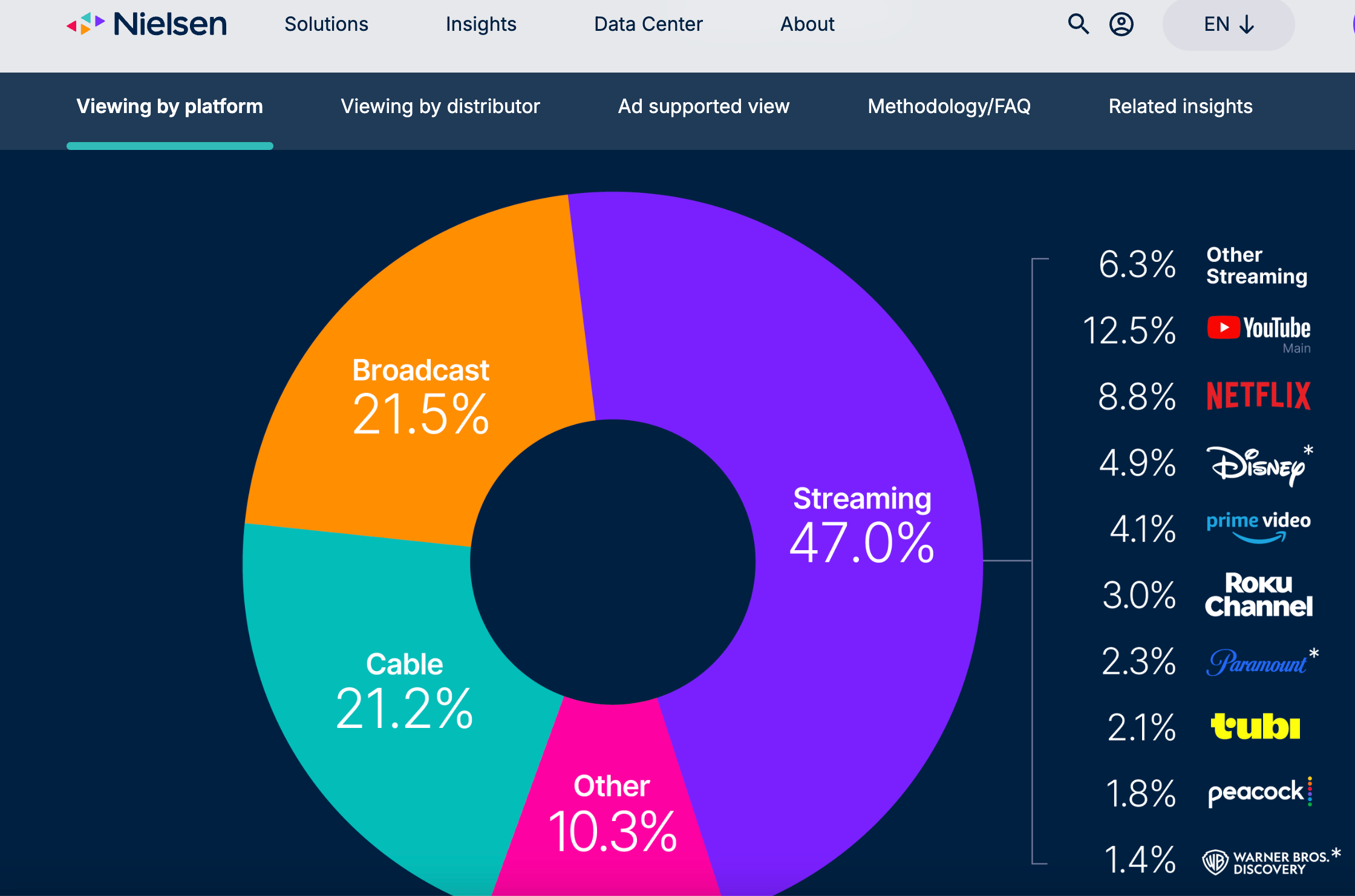 That’s the share of TV viewing you get if you combine the streaming audience for Paramount+ and Warner Bros. Discovery - according to the most recent U.S. data from Nielsen’s The Gauge report.